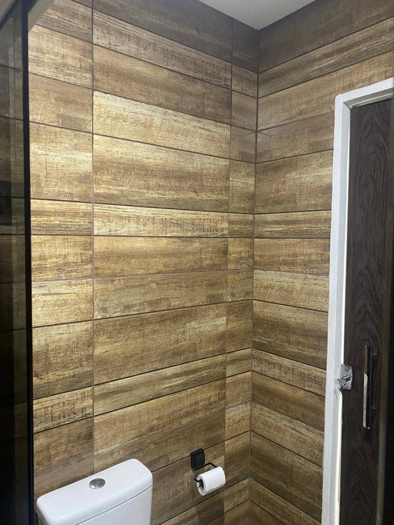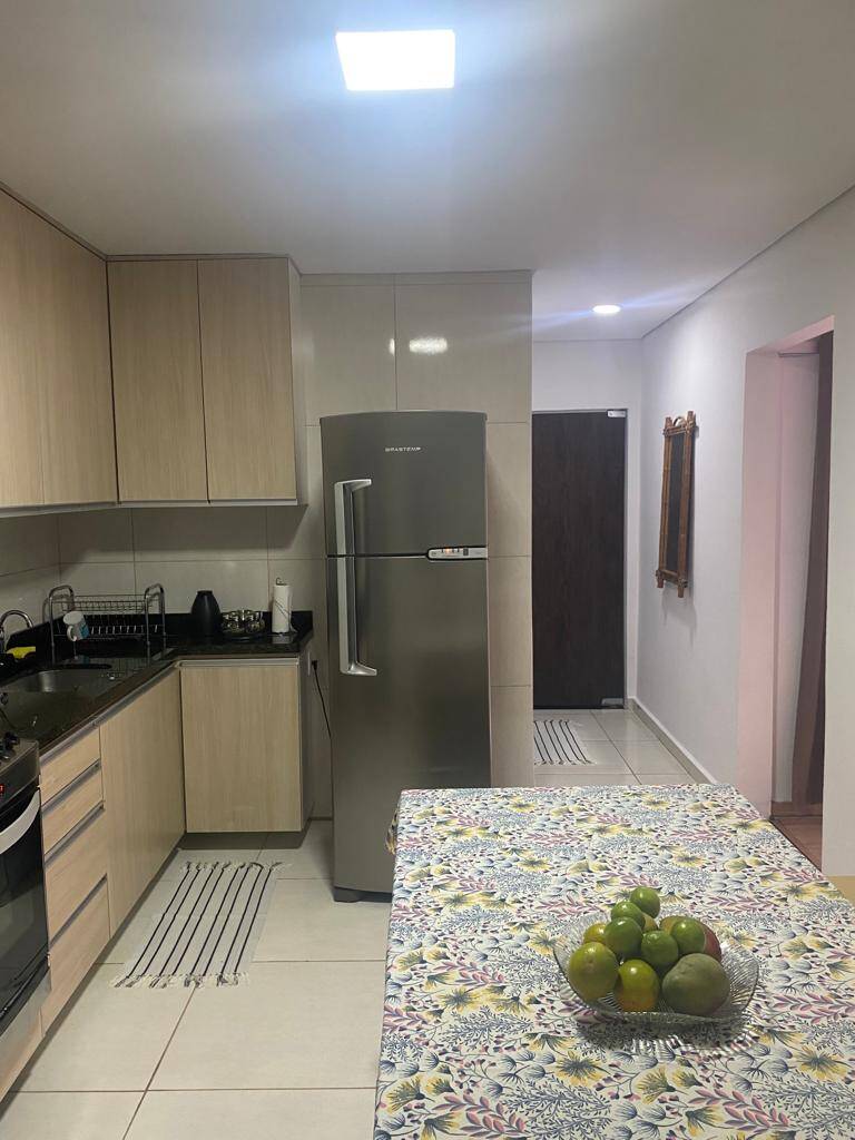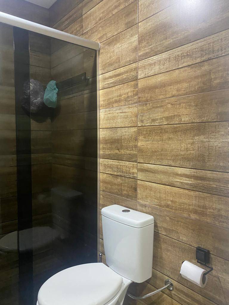 Casa com teto rebaixado em gesso, iluminação em lede, janelas e a porta da sala em blindex transparente as demais portas internas e externas também em blindex adesivado em estilo imitando madeira. Portão social com cobertura em telhas estilo comercial, portão da garagem com acionamento eletrônico.
