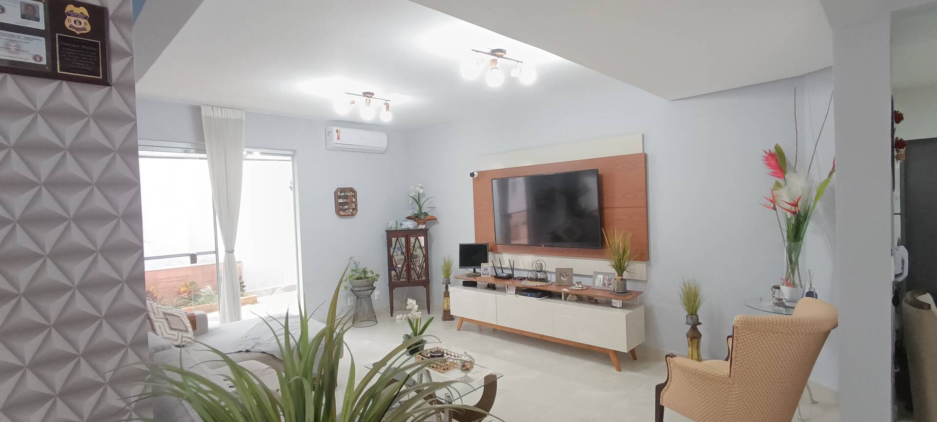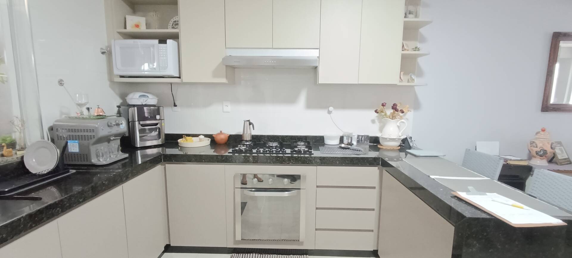 02 salas, cozinha com armários planejados, lavabo, área coberta e fechada com vido, lavanderia.