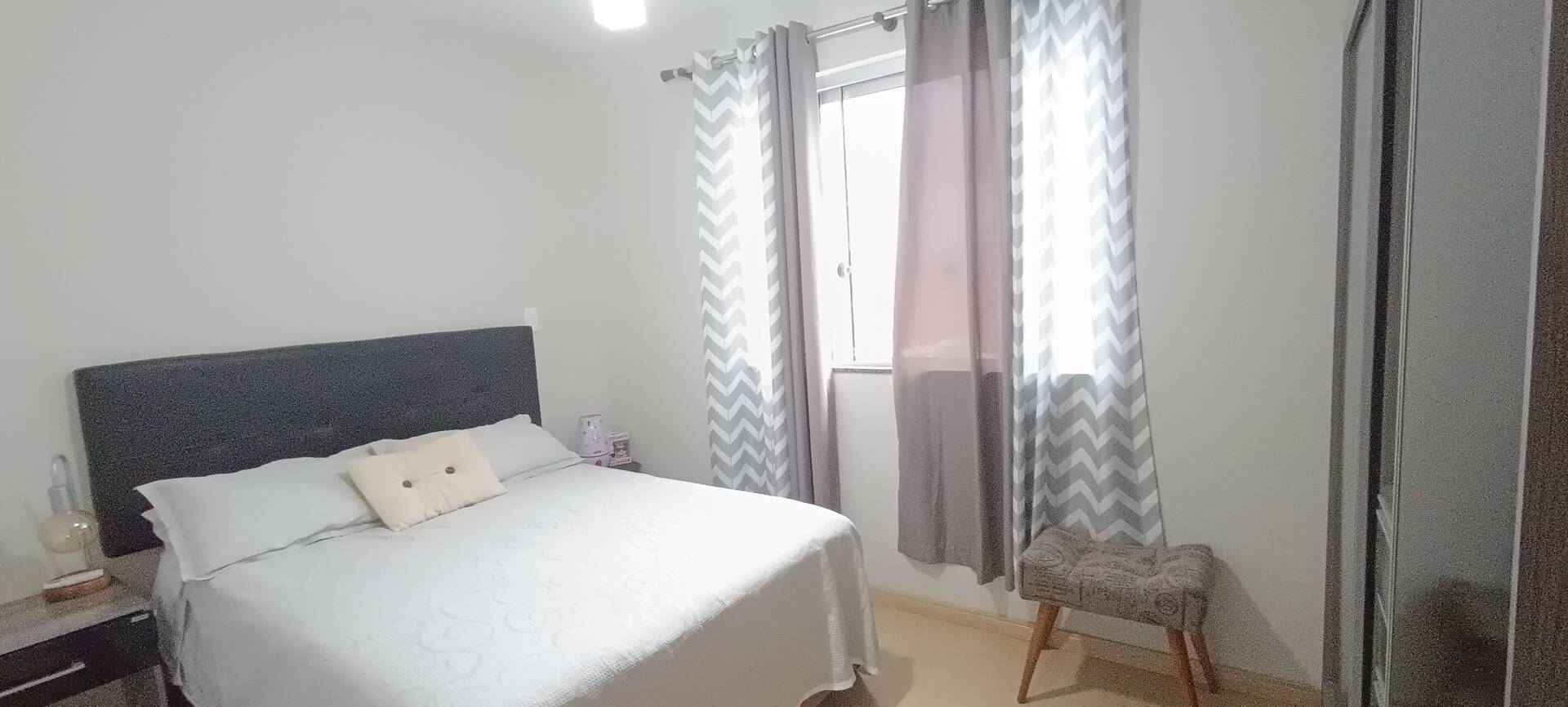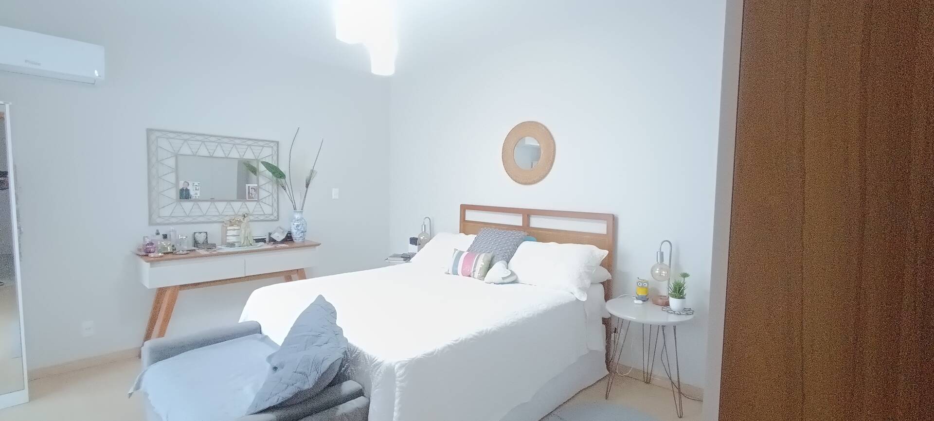 03 quartos, sendo 01 suíte com armários planejados, sacada com vista para a lagoa, 01 banheiro.