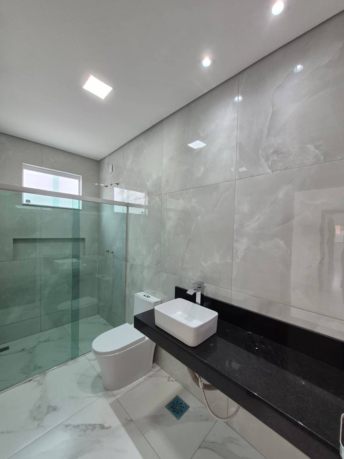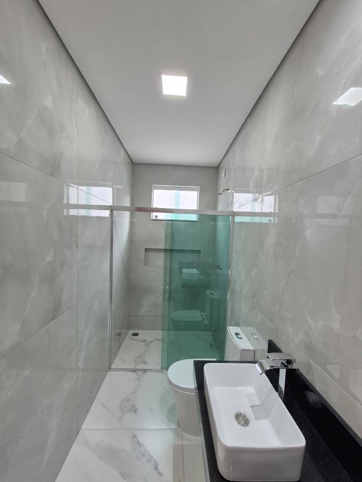 1 Banheiro social com acabamento impecável, box de vidro, bancada em granito, nicho.