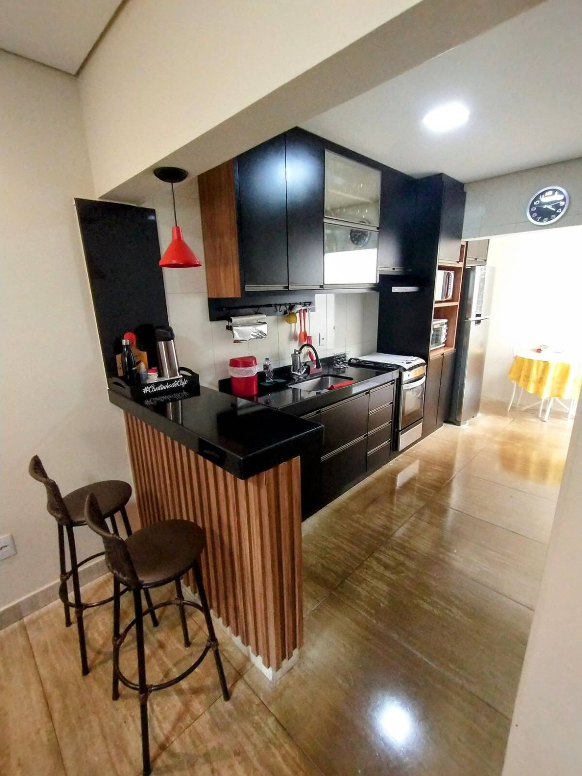 Armários sob medida e bancada em granito, tornando o preparo das refeições muito mais funcional e estiloso.