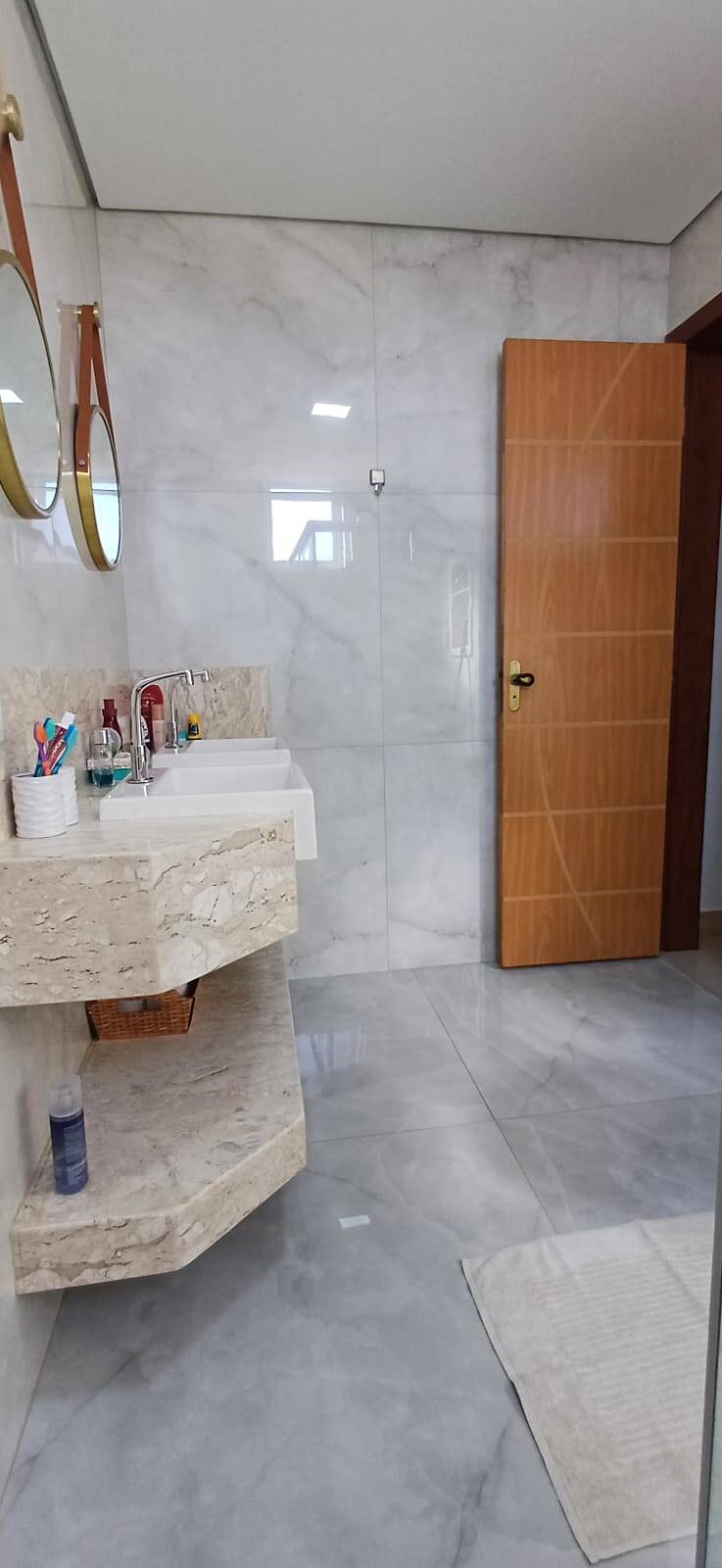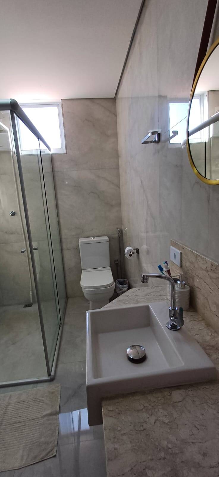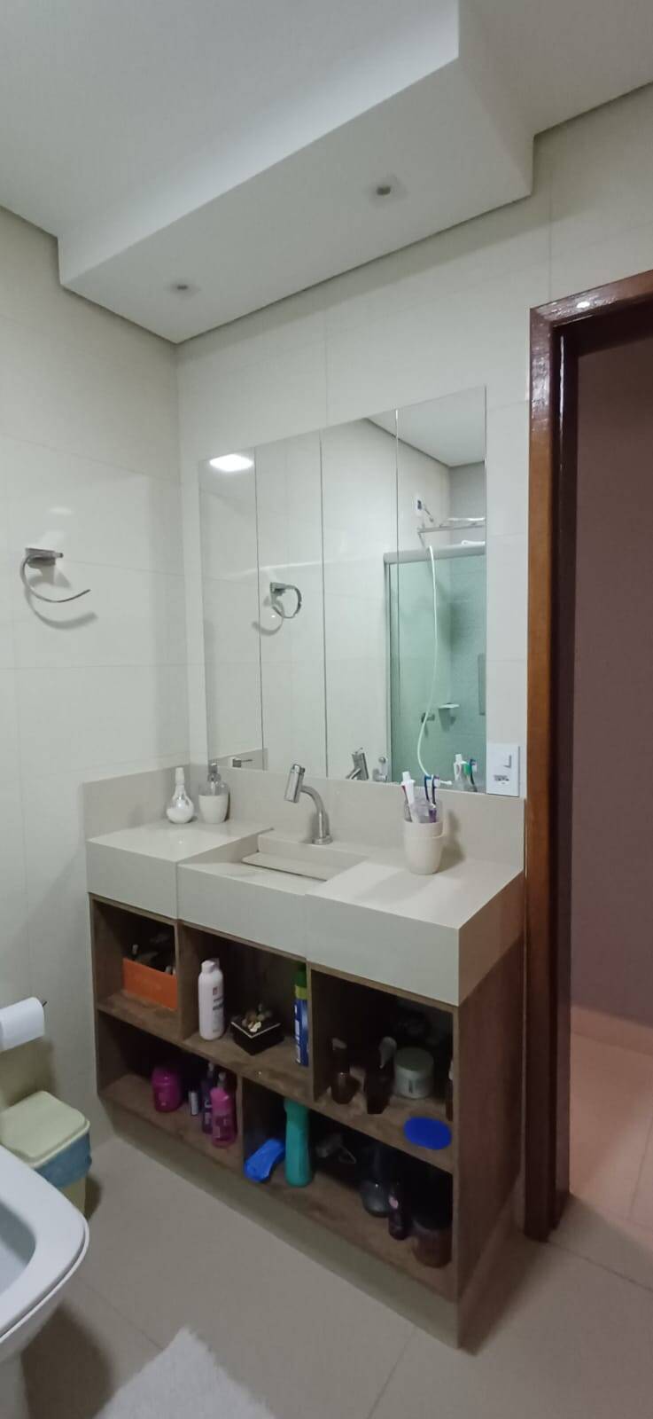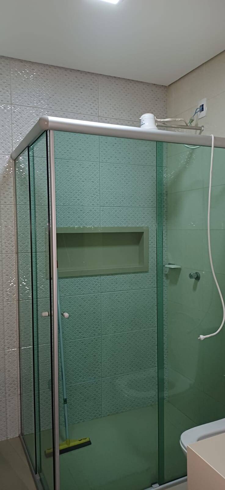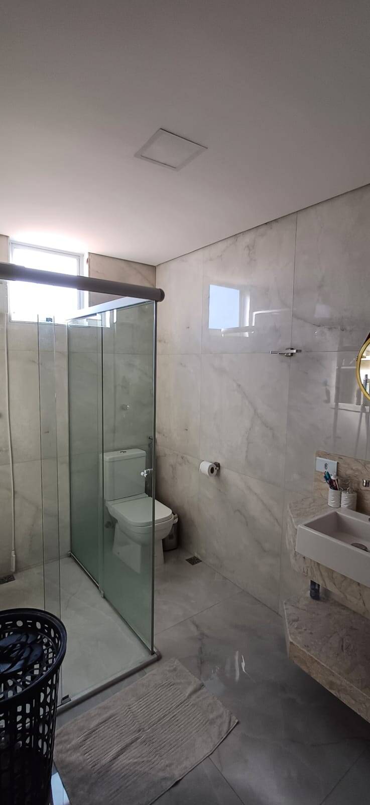 : Com nicho prático, pia esculpida em porcelanato, armário e box, oferecendo funcionalidade e elegância.