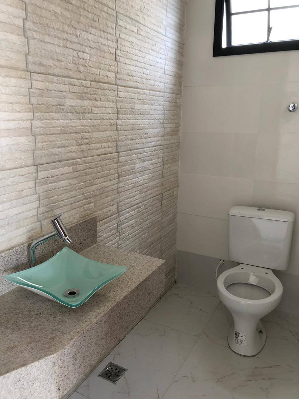1 nível: Sala ampla para 02 ambientes com piso em porcelanato, porta em vidro temperado com acesso à área externa; cozinha revestida até o teto, com pia em granito; lavabo com bancada em granito; área externa com churrasqueira, jardim e área de serviço.