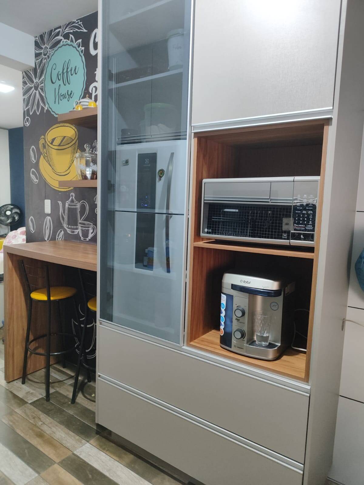 , bancada e espaço bem aproveitado (cozinha partilhada)