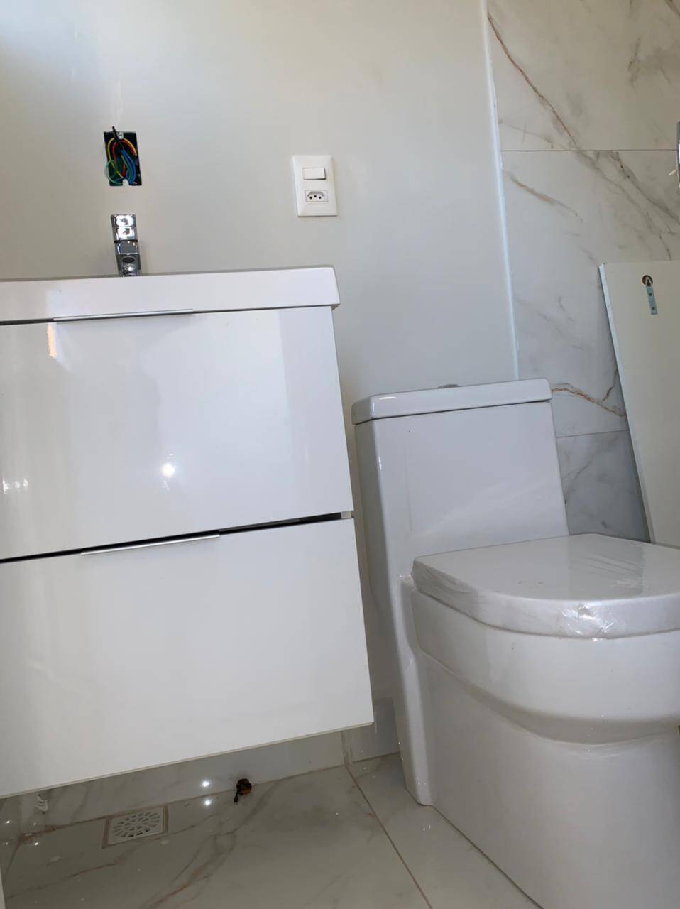 Pré-disposição pra aquecedor de agua solar, com torneiras e registro chuveiro monocromado.