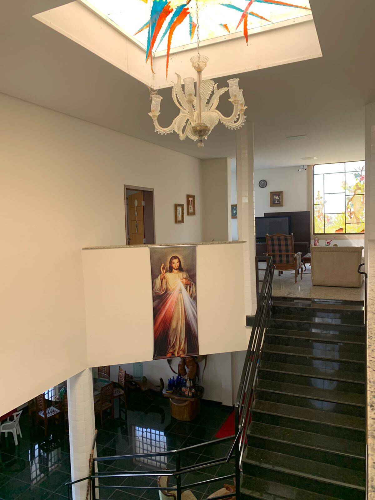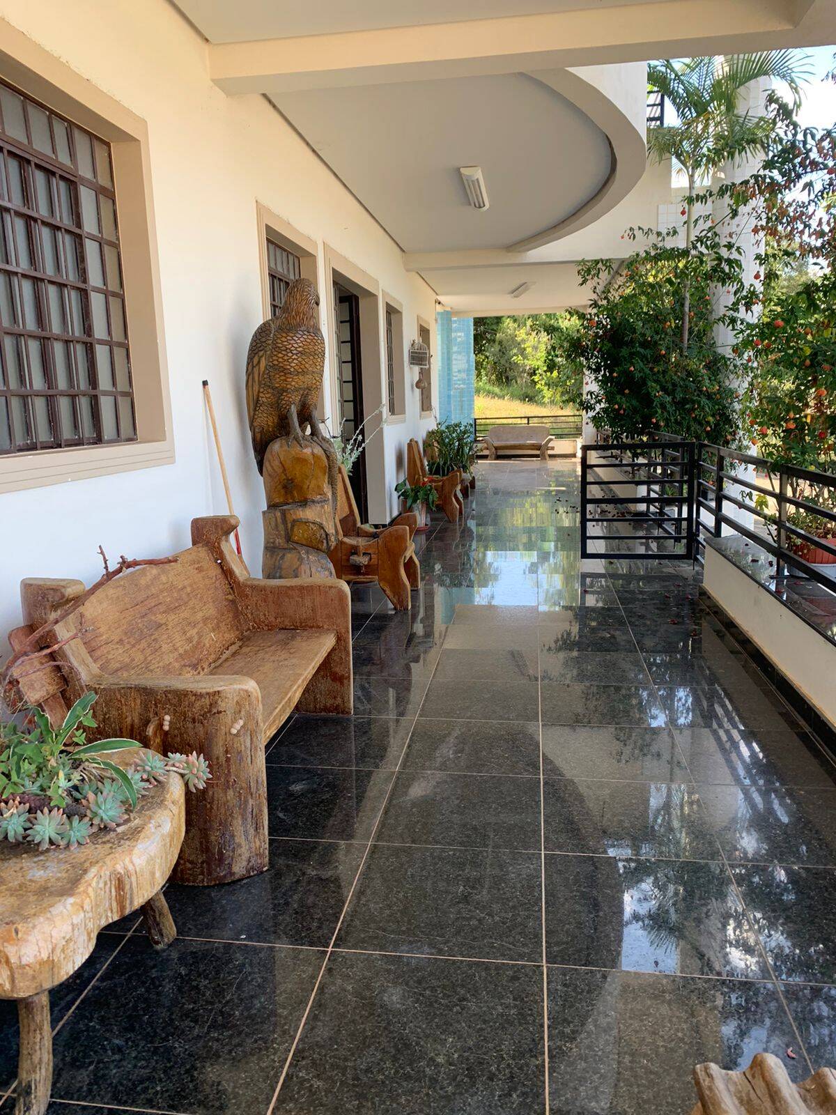 No primeiro piso encontra-se uma varanda com vista para a represa, sala ampla e cozinha completa ambas com piso em granito preto " um show ", garagem coberta para 4 veículos, um boxe e um quarto de empregados.