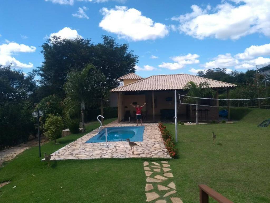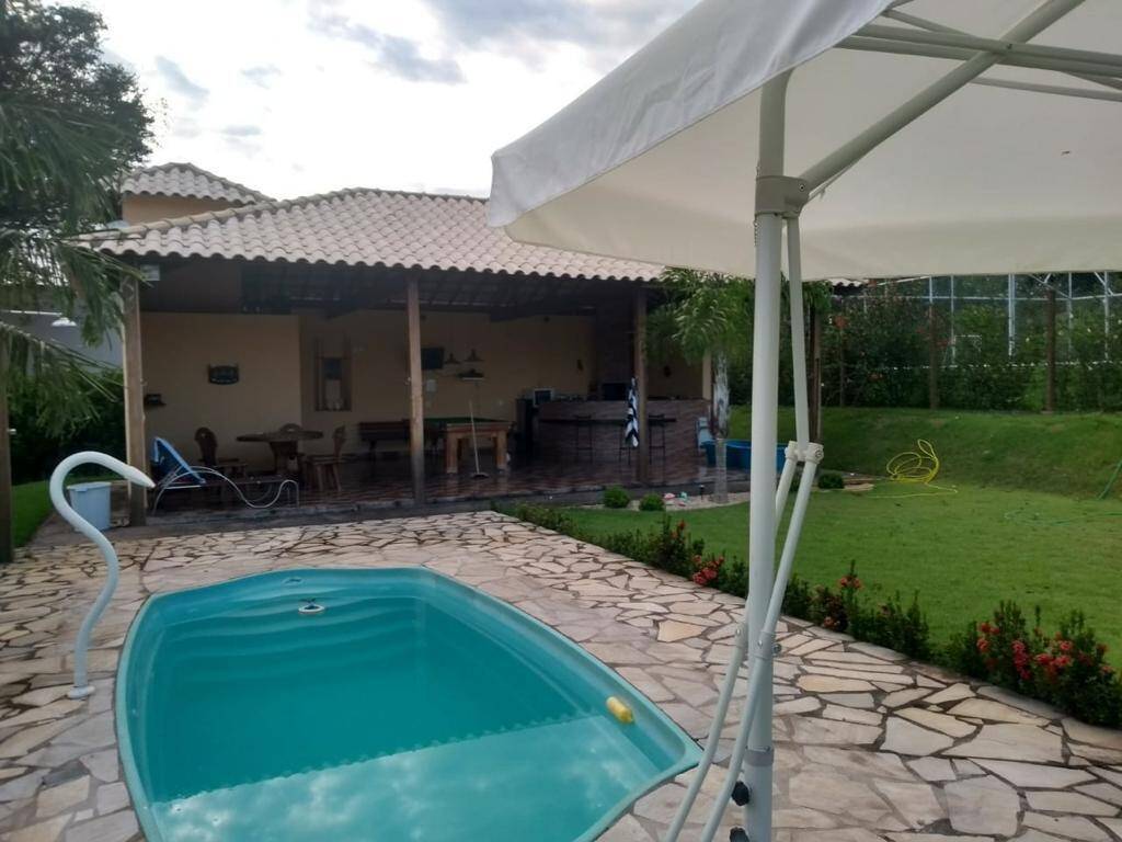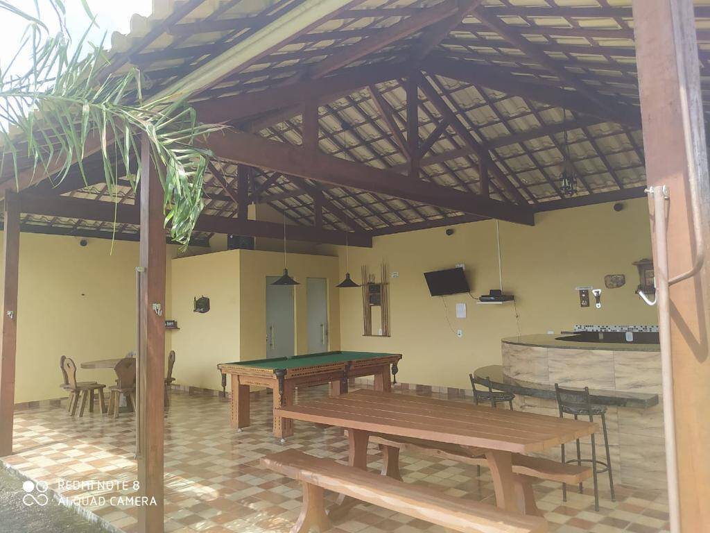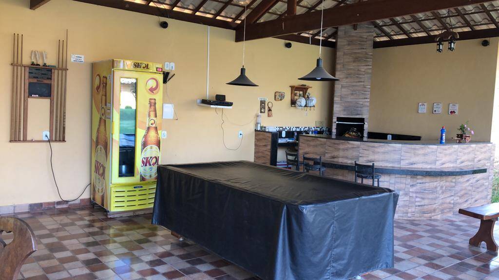 Área gourmet com churrasqueira, piscina, banheiro e despensa
